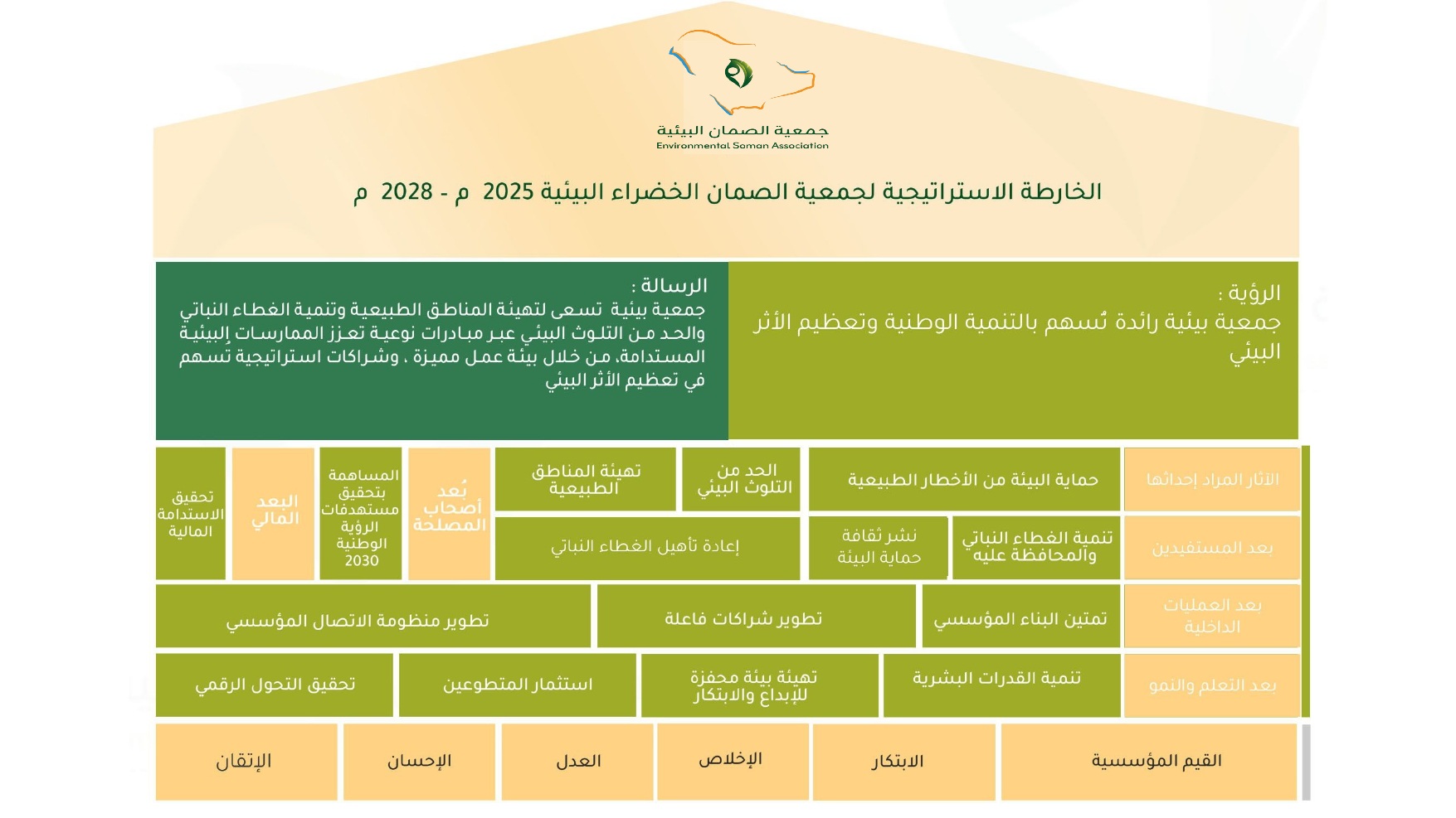 تسعى رؤية المملكة 2030 إلى تحقيق استدامة بيئة وذلك في محور مجتمع حيوي الذي ينعم أفراده بنمط حياة صحي ومحيط يتيح العيش في بيئة إيجابية وجذابه ووفقا للرؤية 2030 تأتي استراتيجية الجمعية انطلاقا من المحافظة على البيئة وتجدد السبل لحمايتها وتطويرها ومنعها من التلوث والمساعدة في معالجة المشاكل البيئية وإنشاء برامج تنموية مستدامة وتهدف الجمعية إلى جذب المتطوعين للمساهمة في قضايا البيئة والمحافظة على الموارد الطبيعية والحياة الفطرية.