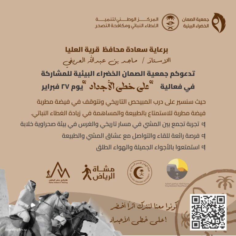 بمناسبة يوم التأسيس نفذت جمعية الصمان الخضراء البيئية وبلدية اللهابة ومكتب وزارة البيئة والمياه والزراعة والمركز الوطني للغطاء النباتي ومكافحة التصحر وبحضور الأستاذ / بدر يماني ...