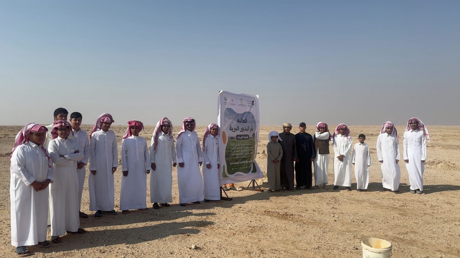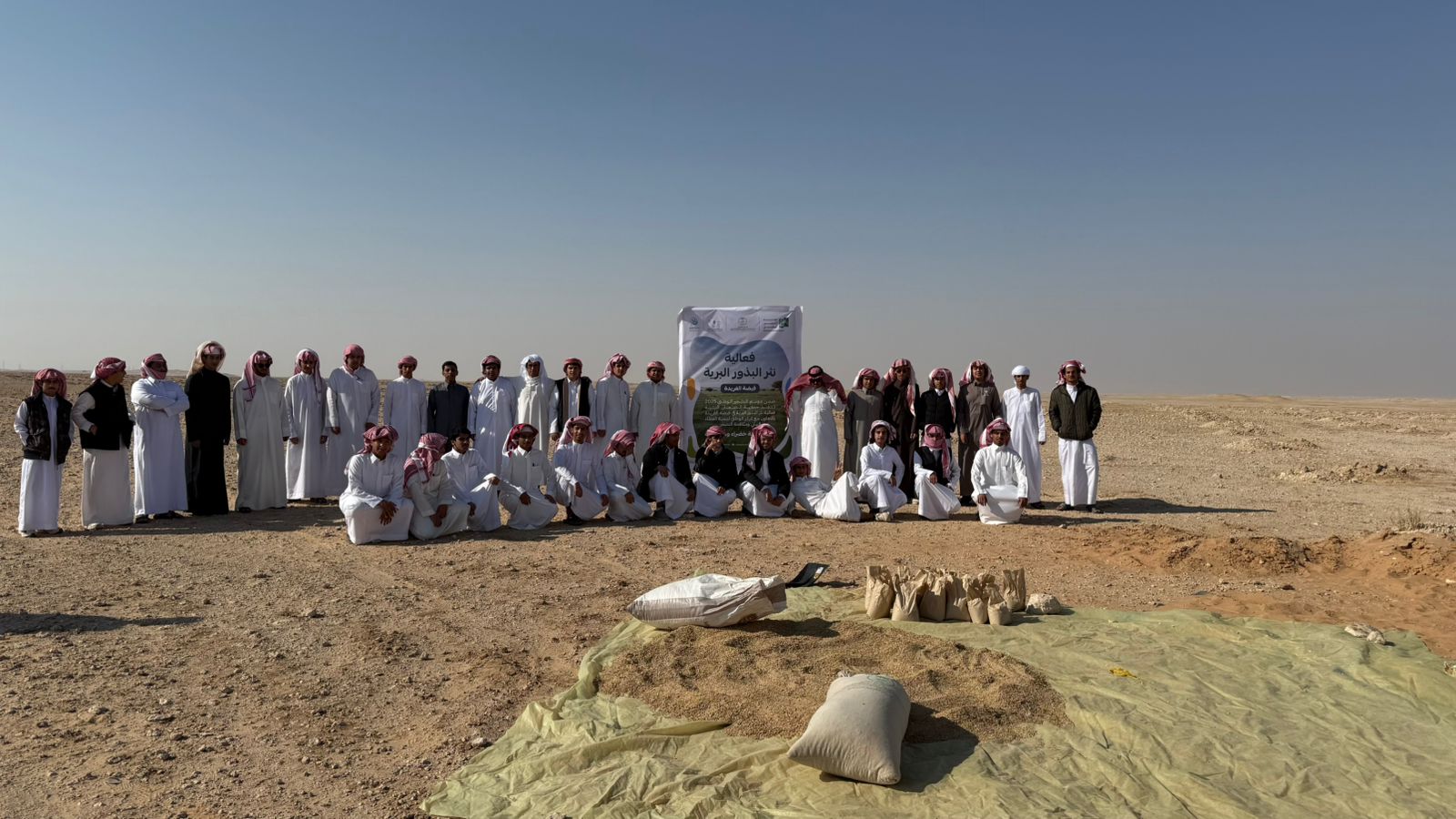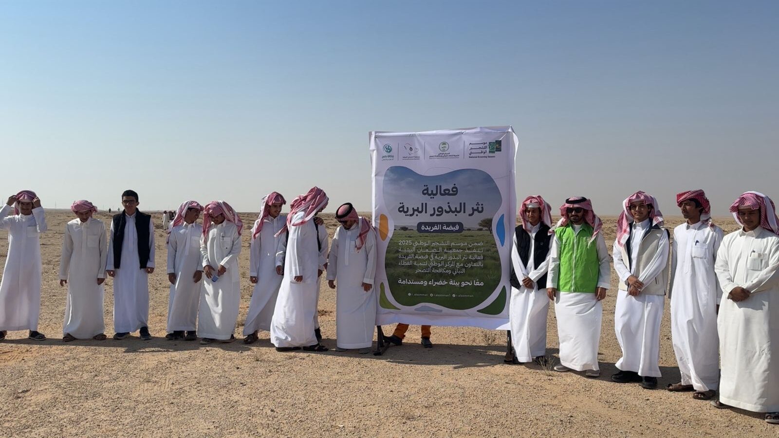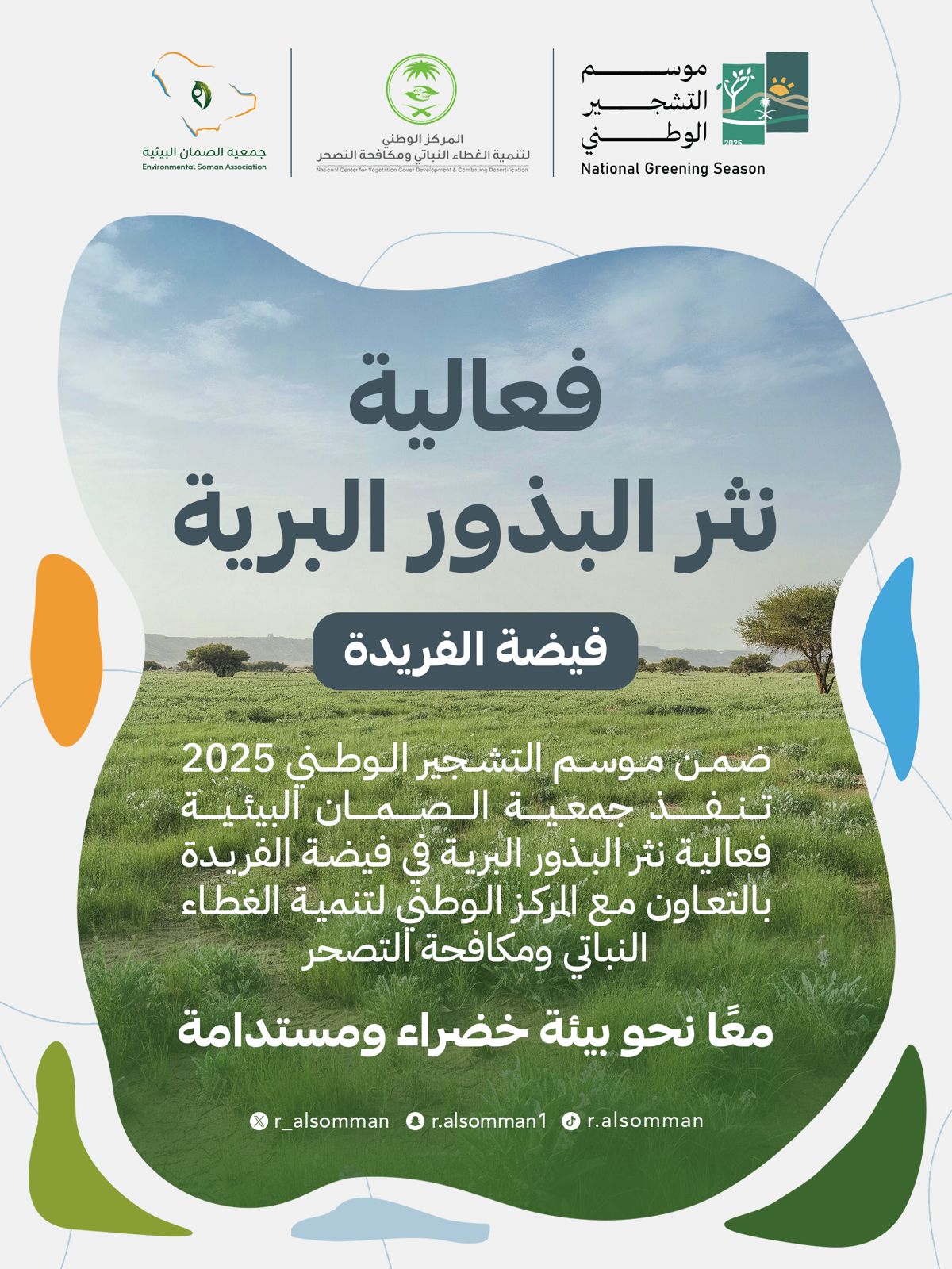 فعالية نثر البذور البرية في فيضة الفريدة ضمن جهودها لتنمية الغطاء النباتي والمحافظة على البيئة في محافظة قرية العليا 🌱
